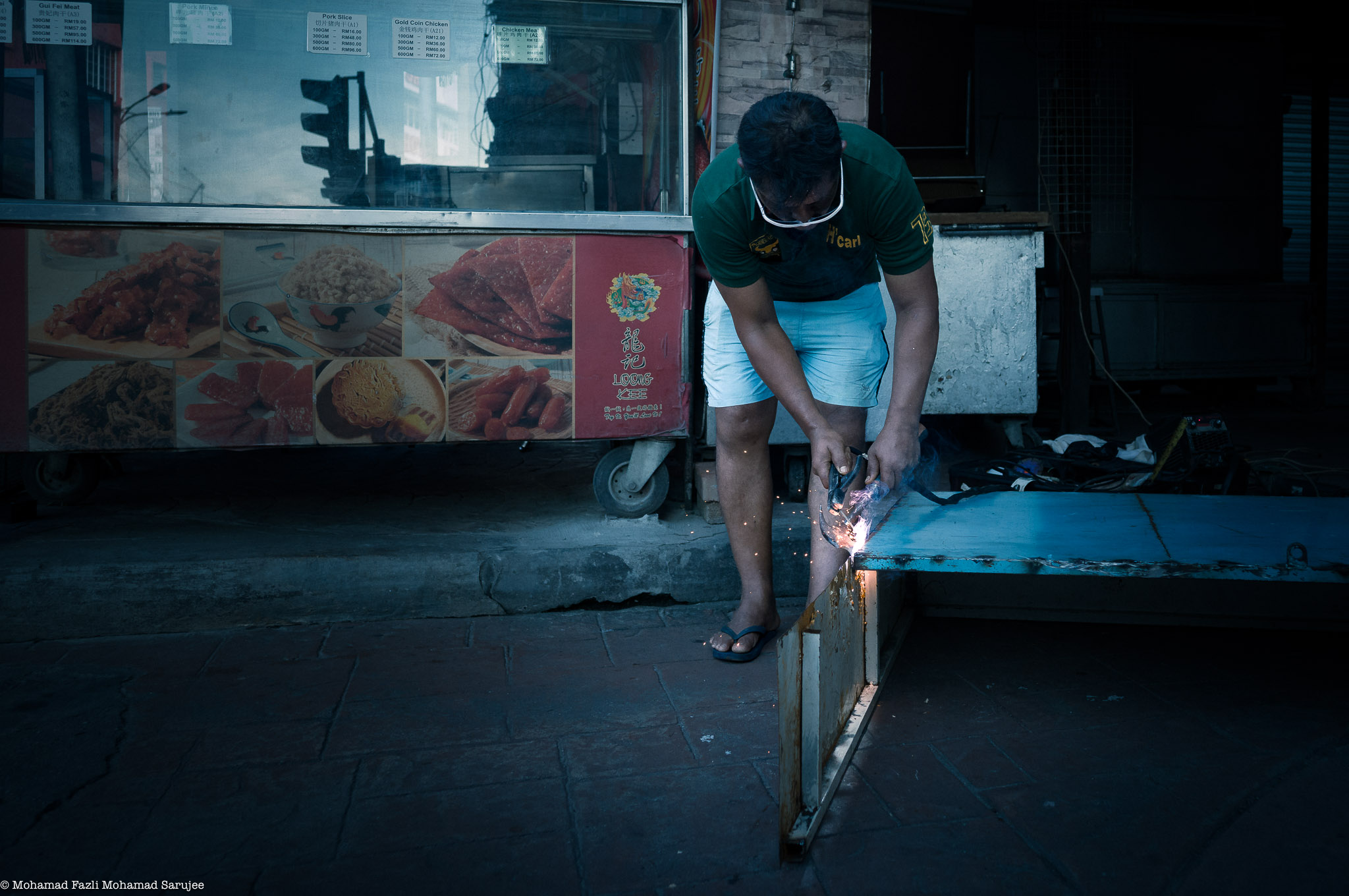 During one of my morning walks – came across this guy who was welding food stall. Didn’t managed to capture the big sparks. Just a snapshot..